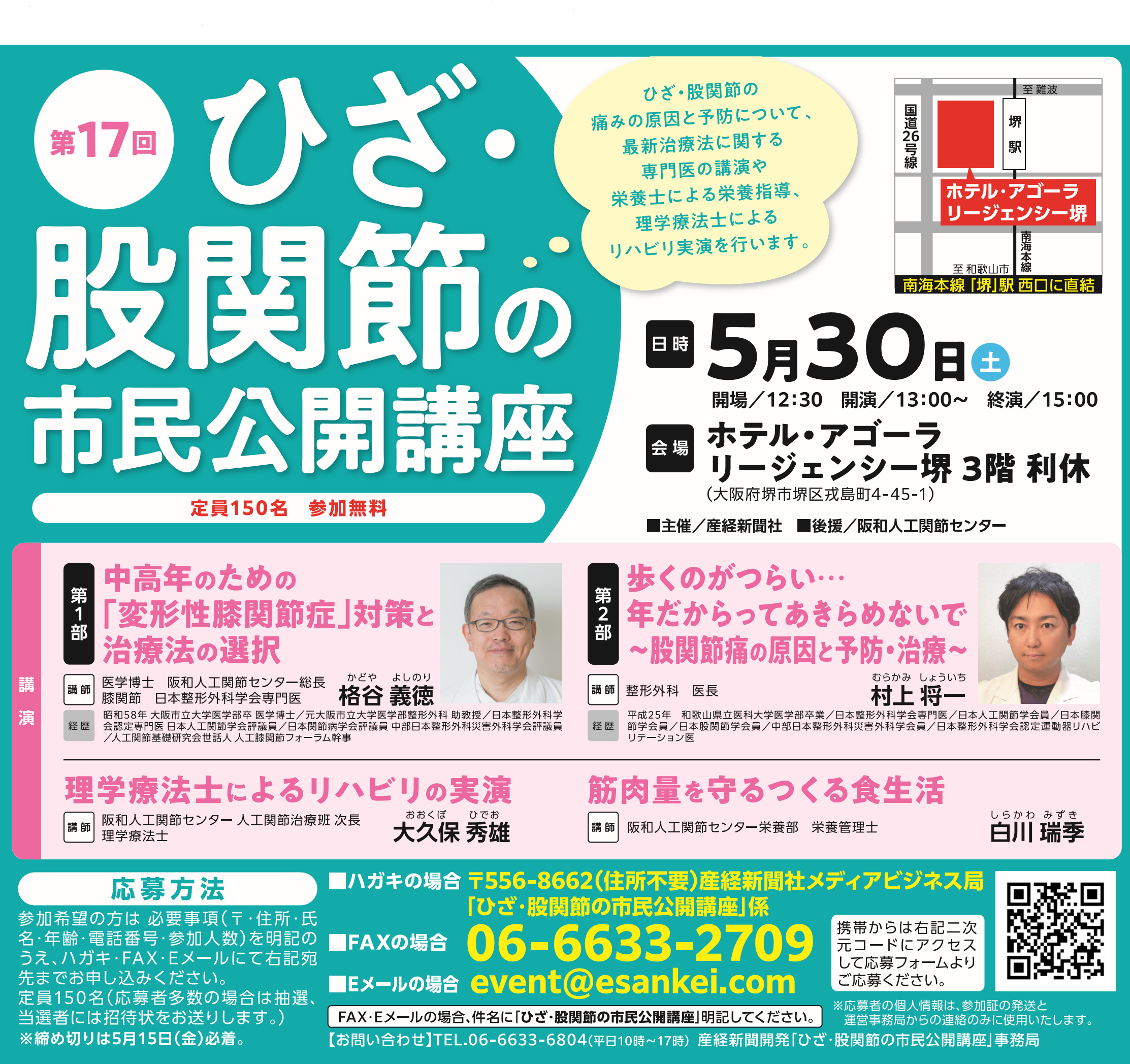 第17回 ひざ・股関節の市民公開講座を開催いたします